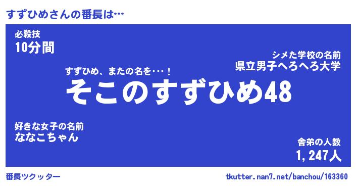 | ヘコむあだ名 | 『すずにー』『豆乳』『すず太郎』 |