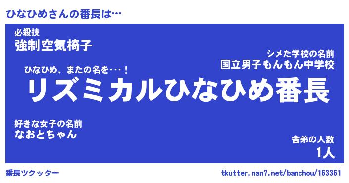 | ファンタジー風あだ名 | 『ヒナフェル』『エターナルヒナヒメー』 |
