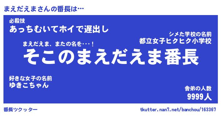 | ファンタジー風あだ名 | 『マエフェル』『エターナルマエダエマー』 |