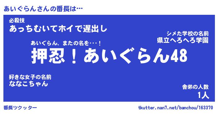 | 肩書あだ名 | 『あいぐらん社長』『あいぐらん総理大臣』 |