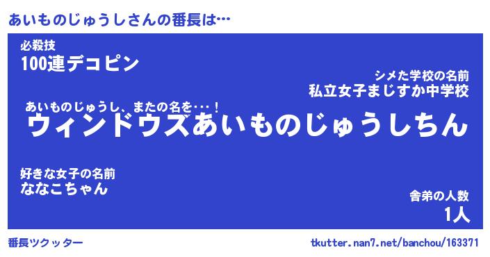 | 肩書あだ名 | 『あいものじゅうし店長』 |