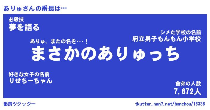 | 伝説のあだ名 | 『伝説のスナイパーありゅ』 |