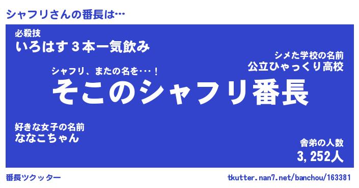 | 男性向けラノベタイトル風あだ名 | 『シャフリの憂鬱』 |