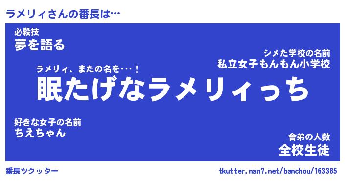 | 意味不明あだ名 | 『ペロリンラメリィ』『永久保存ラメリィ』 |