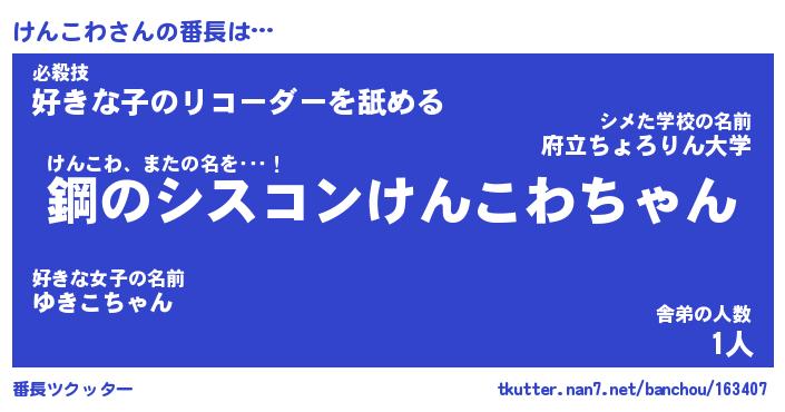 | ファンタジー風あだ名 | 『ケンフェル』『エターナルケンコワー』 |
