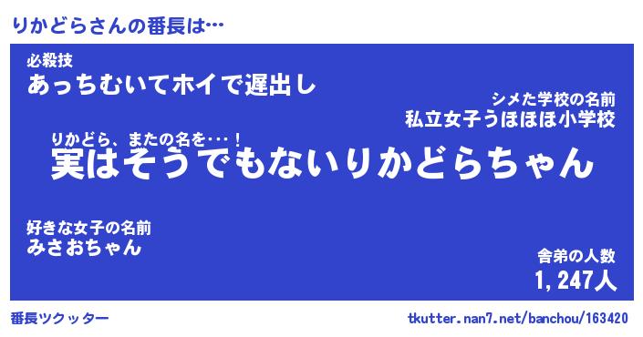 | 意味不明あだ名 | 『ペロリンりかどら』『永久保存りかどら』 |