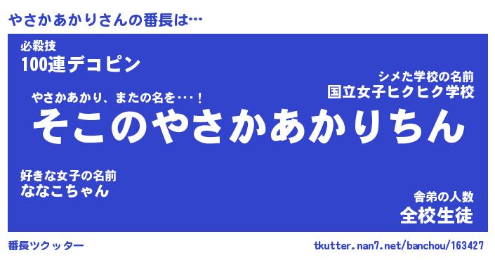 | ヒーロー風カッコイイあだ名 | 『スーパーヤサカアカリ』『幻影騎士ヤサ』 |