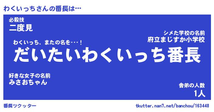 | ヒーロー風カッコイイあだ名 | 『スーパーワクイッチ』『黄金騎士ワク』 |