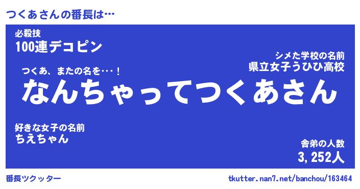 | 意味不明あだ名 | 『ペロリンつくあ』『つくあフォーエバー』 |