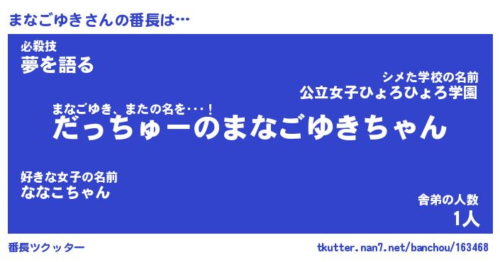 | 肩書あだ名 | 『まなごゆき社長』『まなごゆき大統領』 |