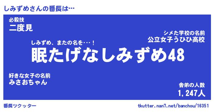 | 伝説のあだ名 | 『封印されしスナイパーしみずめ』 |