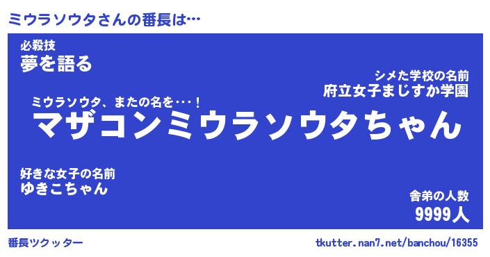 | ヒーロー風カッコイイあだ名 | 『スーパーミウラソウタ』『天弓騎士ミウ』 |