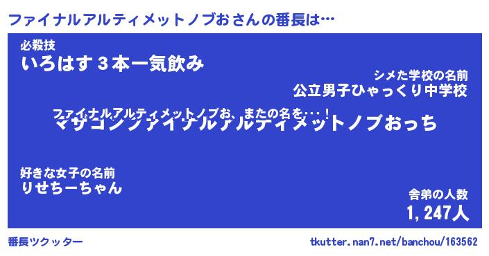 | ヒーロー風カッコイイあだ名 | 『スーパーファイナルアルティメットノブオ』 |