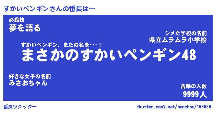 | ヒーロー風カッコイイあだ名 | 『スーパースカイペンギン』 |