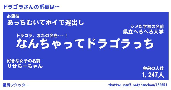 | 意味不明あだ名 | 『ペロリンドラゴラ』『永久保存ドラゴラ』 |