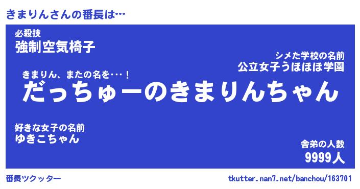 | 意味不明あだ名 | 『ペロリンきまりん』『永久保存きまりん』 |