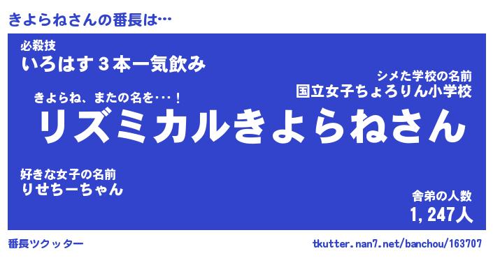 | 意味不明あだ名 | 『ペロリンきよらね』『永久保存きよらね』 |