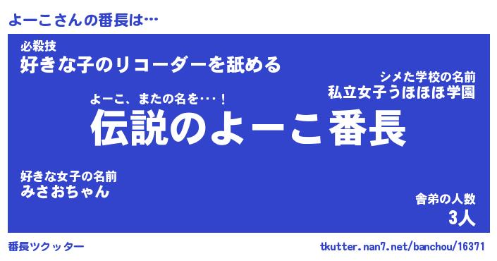 | 肩書あだ名 | 『よーこ店長』『よーこ総理大臣』 |