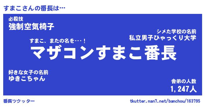 | ヘコむあだ名 | 『すまもー』『牛乳』『すま太郎』 |