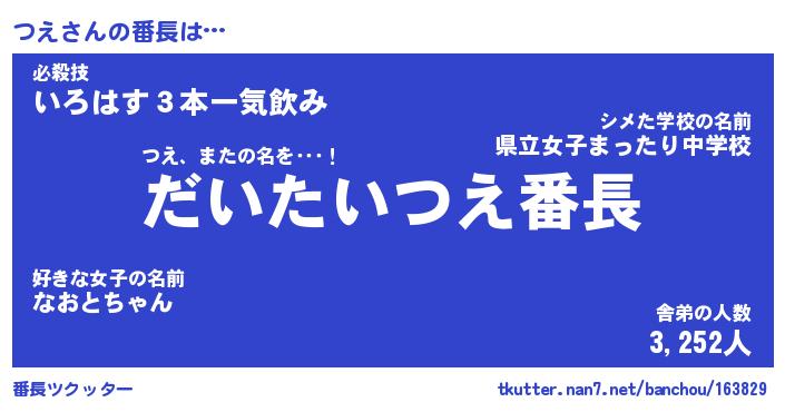 | ヘコむあだ名 | 『つえもー』『なまこ酢』『つえお』 |