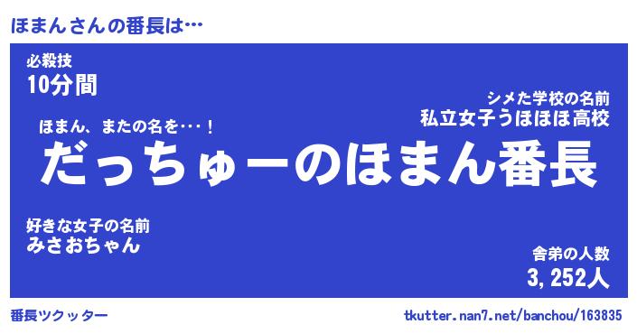 | ヘコむあだ名 | 『ほまもー』『牛乳』『ほまっ子』 |
