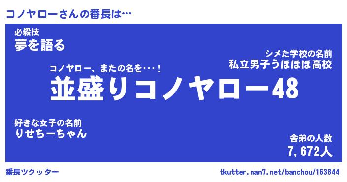 | ファンタジー風あだ名 | 『コノフェル』『エターナルコノヤローー』 |