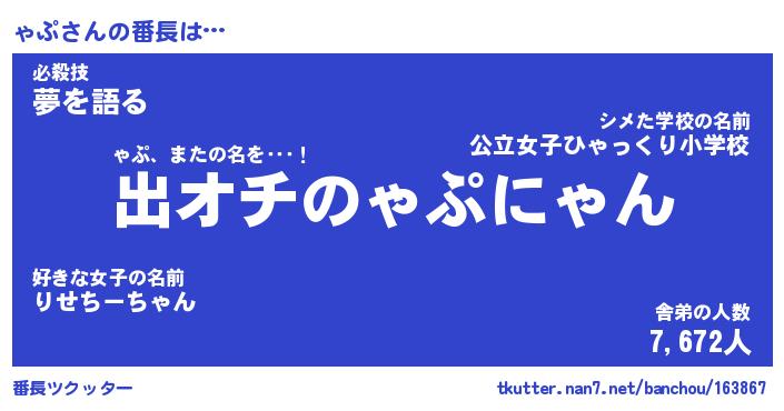 | ヒーロー風カッコイイあだ名 | 『スーパーャプ』『ウルトラゃぷマン』 |
