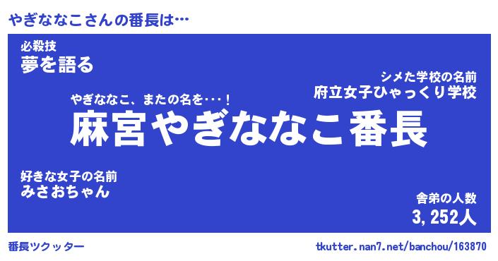 | ヘコむあだ名 | 『やぎもー』『豆乳』『やぎっ子』 |