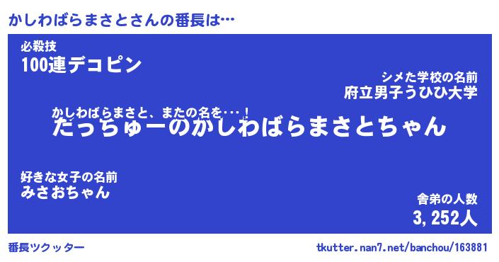 | 胡散臭い通販商品みたいなあだ名 | 『必ず成功する霊験あらたかなお札…その名も「かしわばらまさと」』 |