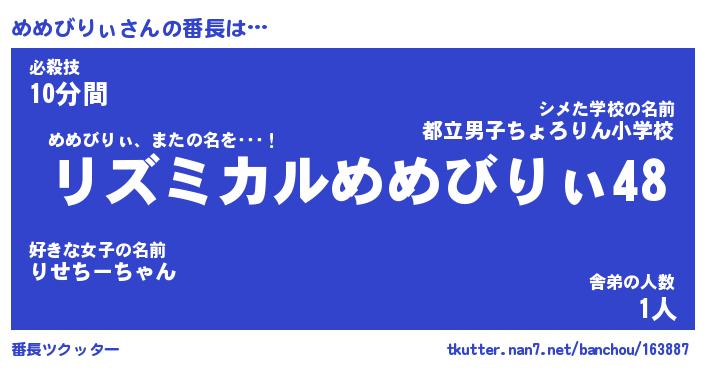 | 肩書あだ名 | 『めめびりぃCEO』『めめびりぃ総理大臣』 |