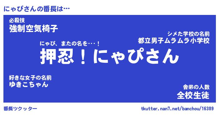 | ヒーロー風カッコイイあだ名 | 『スーパーニャピ』『ウルトラにゃぴマン』 |
