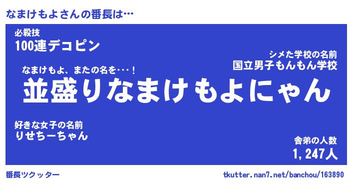 | ポケモン風あだ名 | 『ナマチュウ』『ナマケダネ』 |