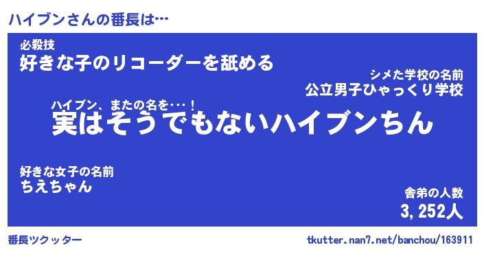 | 意味不明あだ名 | 『ペロリンハイブン』『永久保存ハイブン』 |