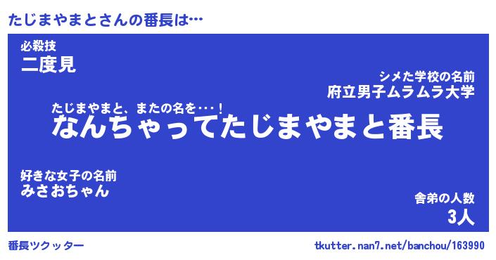 | 伝説のあだ名 | 『伝説のスナイパーたじまやまと』 |