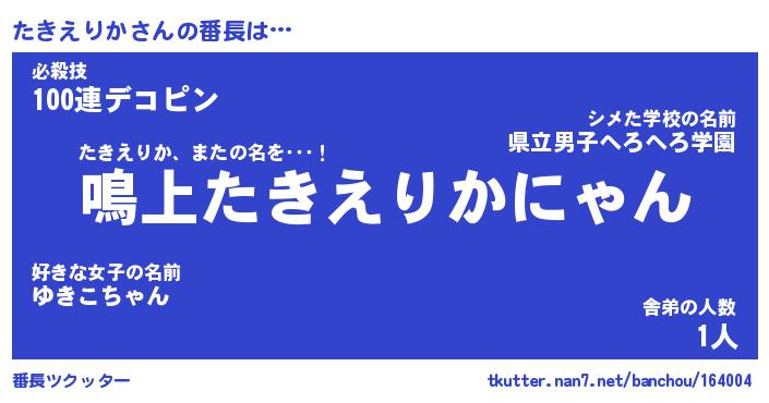 | 恥ずかしいあだ名 | 『プリティーたきえりか』『たきっちょ』 |