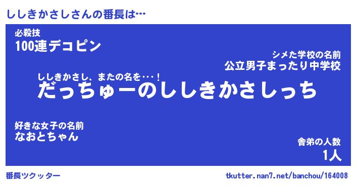| ヘコむあだ名 | 『ししもー』『酢こんぶ』『ししを』 |