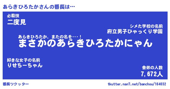 | ヒーロー風カッコイイあだ名 | 『スーパーアラキヒロタカ』 |