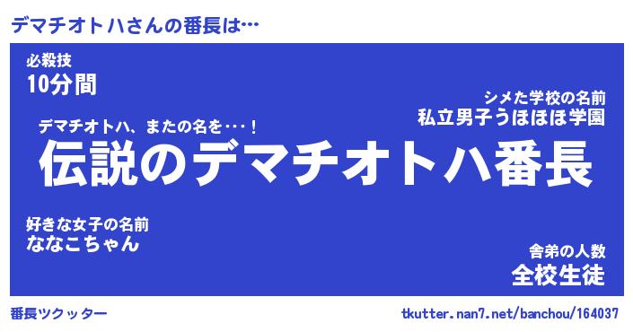 | 伝説のあだ名 | 『伝説のスナイパーデマチオトハ』 |