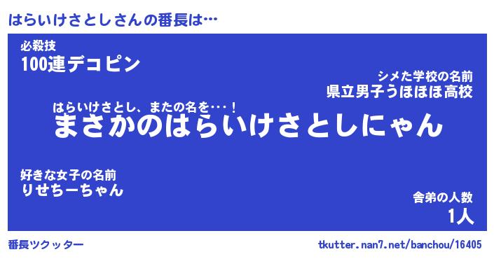 | ヒーロー風カッコイイあだ名 | 『スーパーハライケサトシ』 |