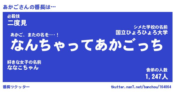 | 意味不明あだ名 | 『ペロリンあかご』『あかごフォーエバー』 |