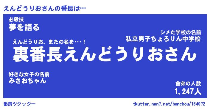 | ヘコむあだ名 | 『えんもー』『豆乳』『えんっちょ』 |