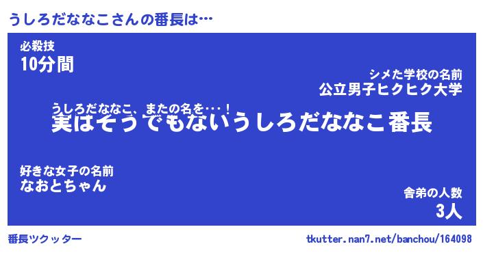 | 肩書あだ名 | 『うしろだななこ御曹司』 |