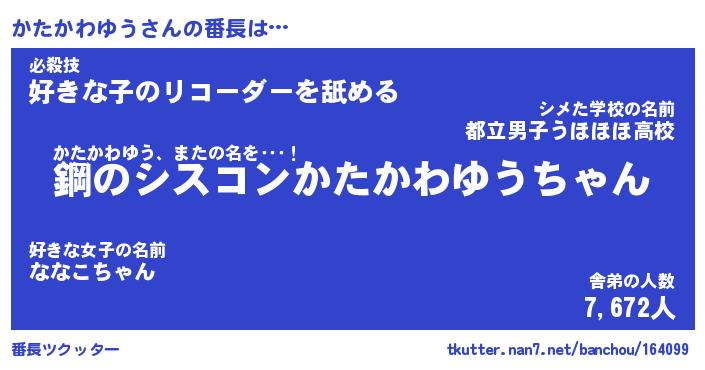 | ヒーロー風カッコイイあだ名 | 『スーパーカタカワユウ』『炎刃騎士カタ』 |