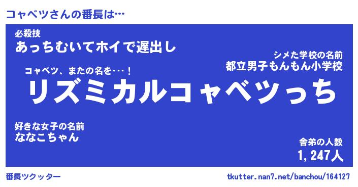 | 意味不明あだ名 | 『ペロリンコャベツ』『永久保存コャベツ』 |