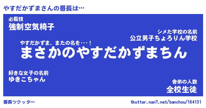 | 肩書あだ名 | 『やすだかずま社長』『やすだかずま塾長』 |