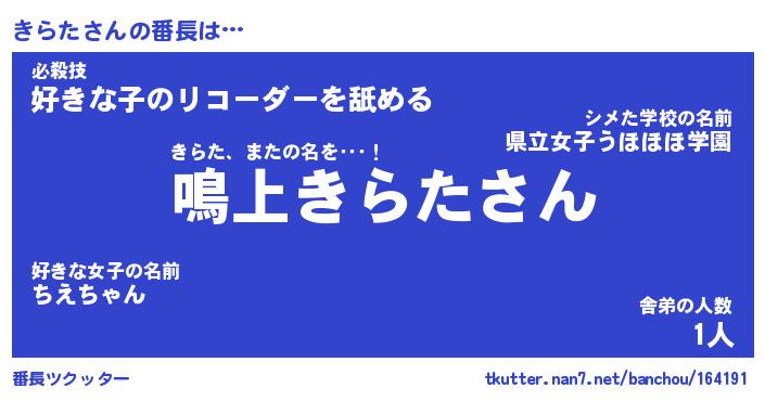 | 意味不明あだ名 | 『ペロリンきらた』『きらたフォーエバー』 |