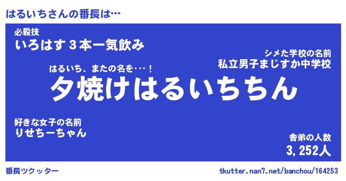 | 意味不明あだ名 | 『ペロリンはるいち』『永久保存はるいち』 |