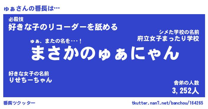| 2回繰り返すあだ名 | 『ゅぁゅぁ』『ゅゅぁぁ』『ごわごわ』 |