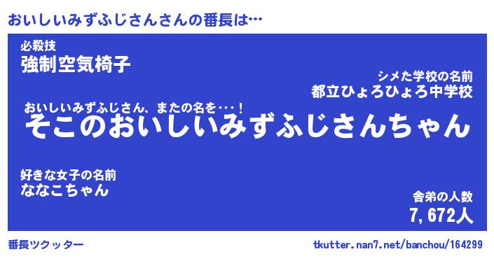 | 男性向けラノベタイトル風あだ名 | 『おいしいみずふじさんの憂鬱』 |