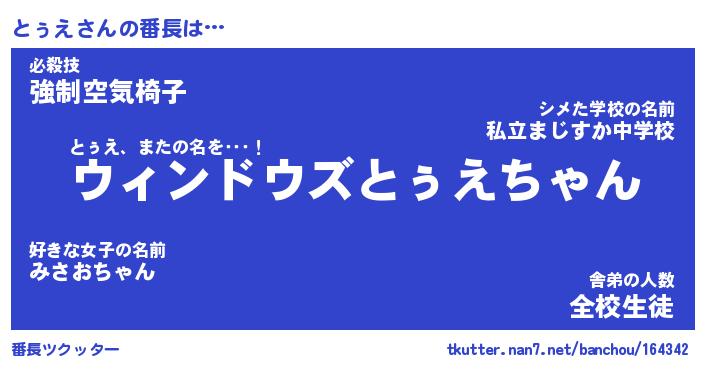 | 肩書あだ名 | 『とぅえ社長』『とぅえ国家主席』 |